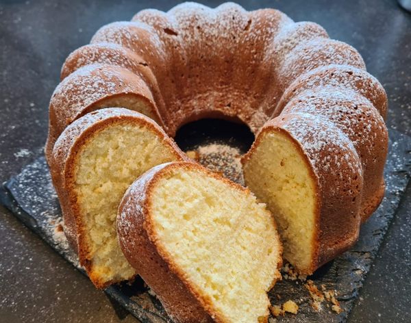 Die weiche Butter mit dem Olivenöl Zitrone, Zucker und Black and White Vanillezucker schaumig rühren. Weiter schlagen und den Frischkäse, Zitronenschale, Zitronensaft und dann die Eier einzeln unterrühren. Nun das Mehl, Backpulver und eine Preis Meersalz gut unterrühren. Den Teig in die Kranzform füllen und 60 Minuten backen.